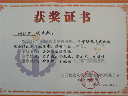 嘉興市交通學校物流專業(yè)學生在全國技能大賽中喜獲三等獎